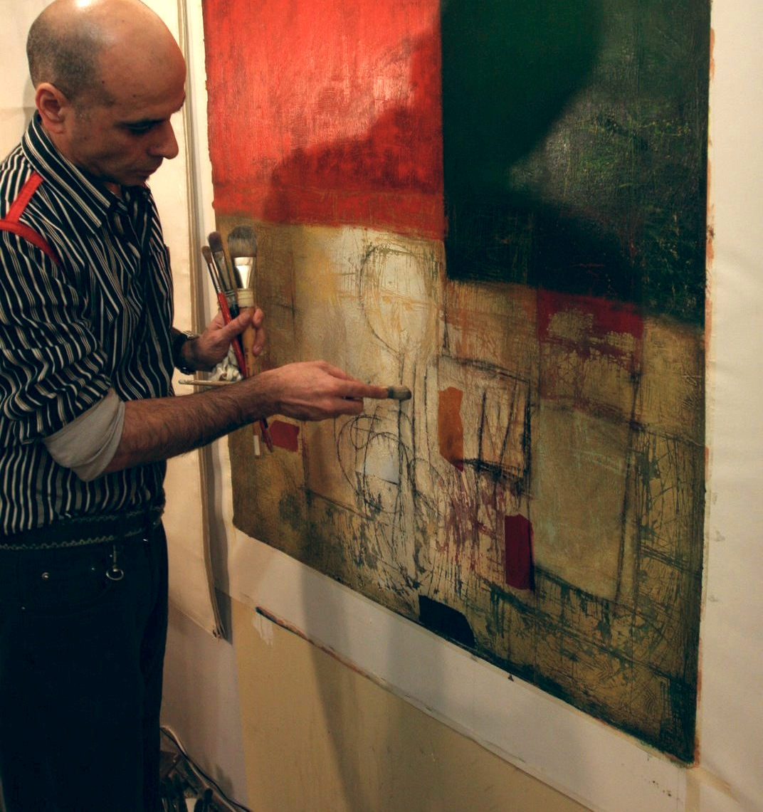 He has been known to thrive on chance and "destructive dialectics" in his work. A highly impulsive process of layering, scratching, ripping and carving his works at mature, even polished stages is frequently adopted. The canvases are then re-figured as conflicted, mood-infested renderings following a jagged arc of inspiration over time.